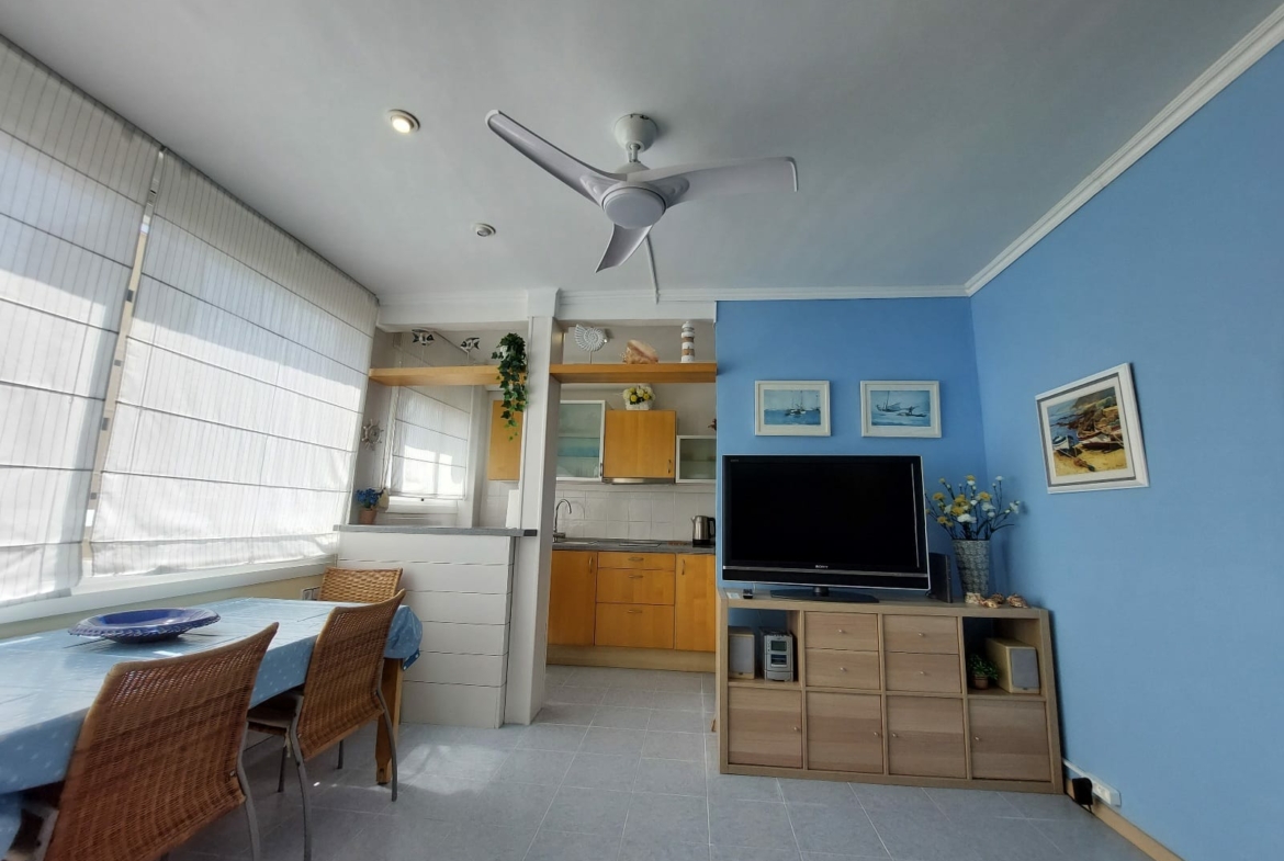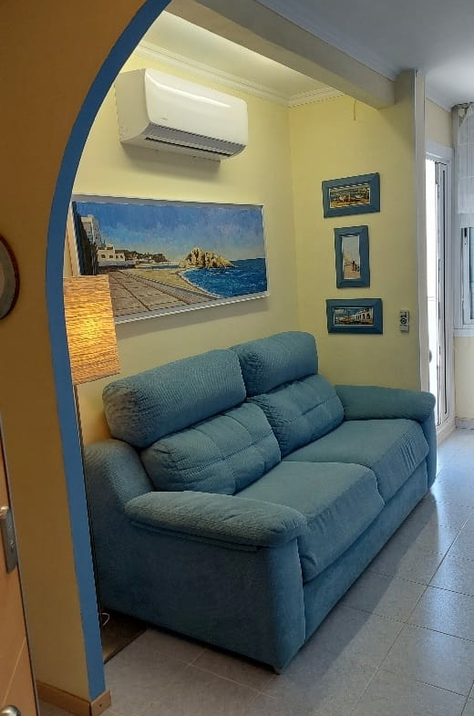 Es un apartamento muy cómodo para 4 personas, con Wi-Fi y aire acondicionado con bomba de calor (nueva instalación en 2026). Decorado con muy buen gusto y moderno, con un buen balcón donde sentarse a disfrutar del mar, muy completo y con una zona comunitaria muy completa y bonita con piscina, parque infantil con columpios. Consta de 1 habitación principal con cama de matrimonio, armarios , ventilador de techo y salida al balcón con vistas al mar.