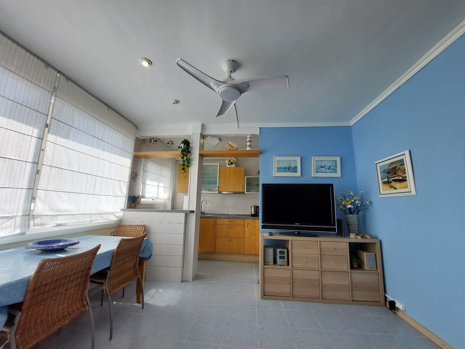 El comedor es espacioso y con un cómodo sofá cama para 2 personas más. El comedor esta muy bien decorado, completo y con gusto, con TV GRANDE” vistas al mar y en especial a la zona del puerto y la “Palomera”. Además juega con unos colores muy de verano y relajantes que lo hacen muy bonito y ventilador e techo. Internet Fibra 100MB