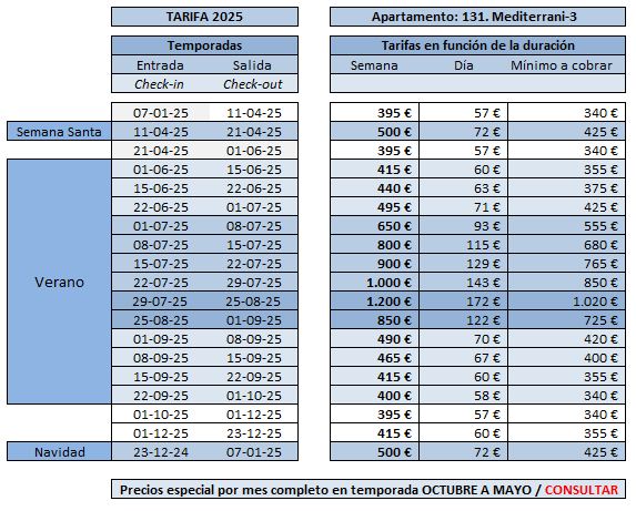 Es un apartamento muy bonito, 2ª línea de mar, a 3-4 minutos a pie de la playa, con terracita, zona comunitaria con piscina y parque infantil.