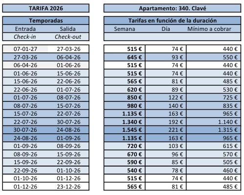 OPCIONALES SEGÚN DISPONIBILIDAD: Trona y cuna de viaje. Ropa de cama y toallas. Servicio de limpieza, etc. (con coste extra)