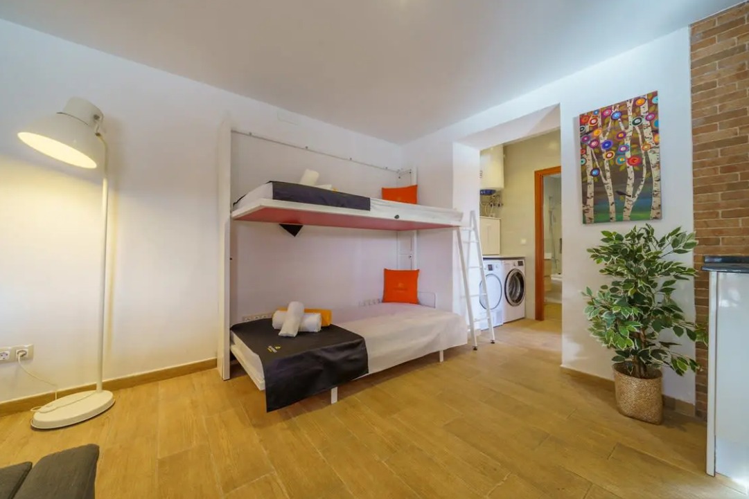 Esta acogedora y moderna casa de una sola planta dispone de una habitación, un salón-comedor con cocina abierta y un baño, todo en el mismo nivel del suelo (sin escaleras), ideal para familias con niños pequeños y personas mayores.